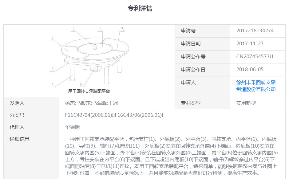 (專利號:CN207454573U)用于回轉(zhuǎn)支承裝配平臺