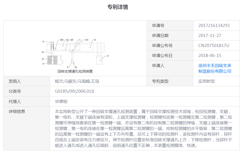 (專利號:CN207501817U)回轉(zhuǎn)支撐通孔檢測裝置